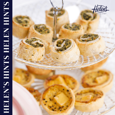 Beautiful presentation can enhance even the simplest menu. Arrange Helen’s products on rustic boards, tiered platters, or ceramic trays for a professional finish. Mix warm savoury bites with fresh accompaniments like relishes, dipping sauces, or small salads for extra colour and appeal.